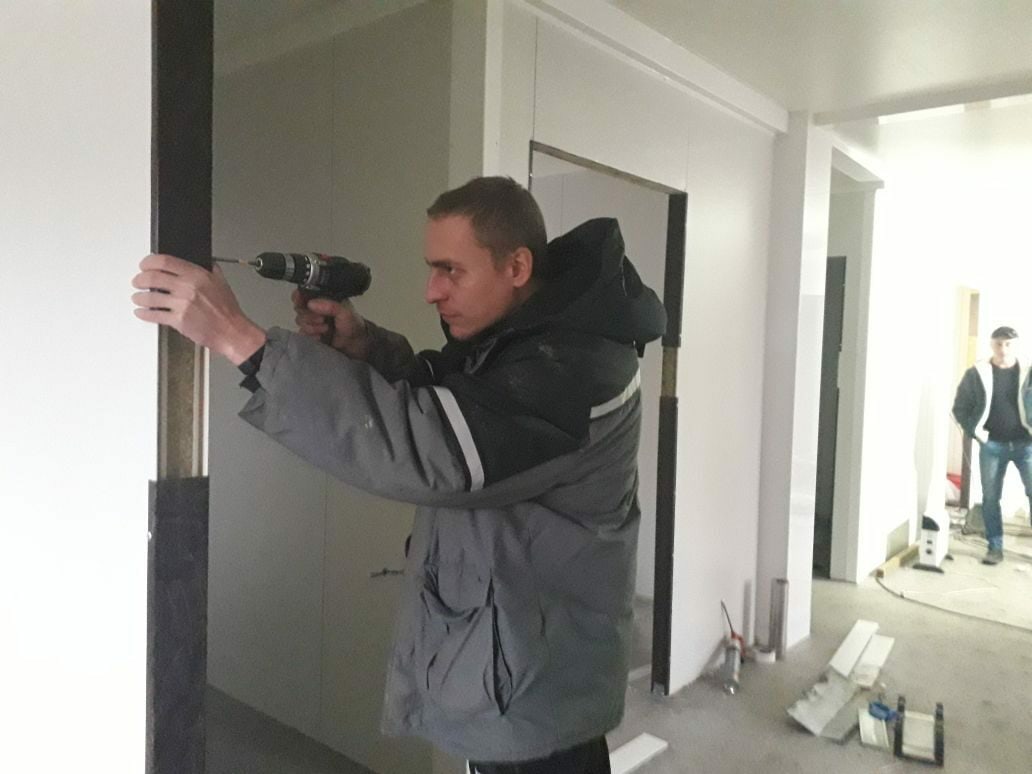 Внутренняя отделка практически завершена, осталось установить межкомнатные двери. В настоящий момент рабочие заняты установкой пандуса и навеса над входной группой, а затем они передадут эстафету сантехникам и электрикам.